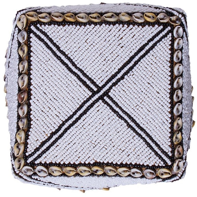 the baskets are handmade using seed beads on woven rattan