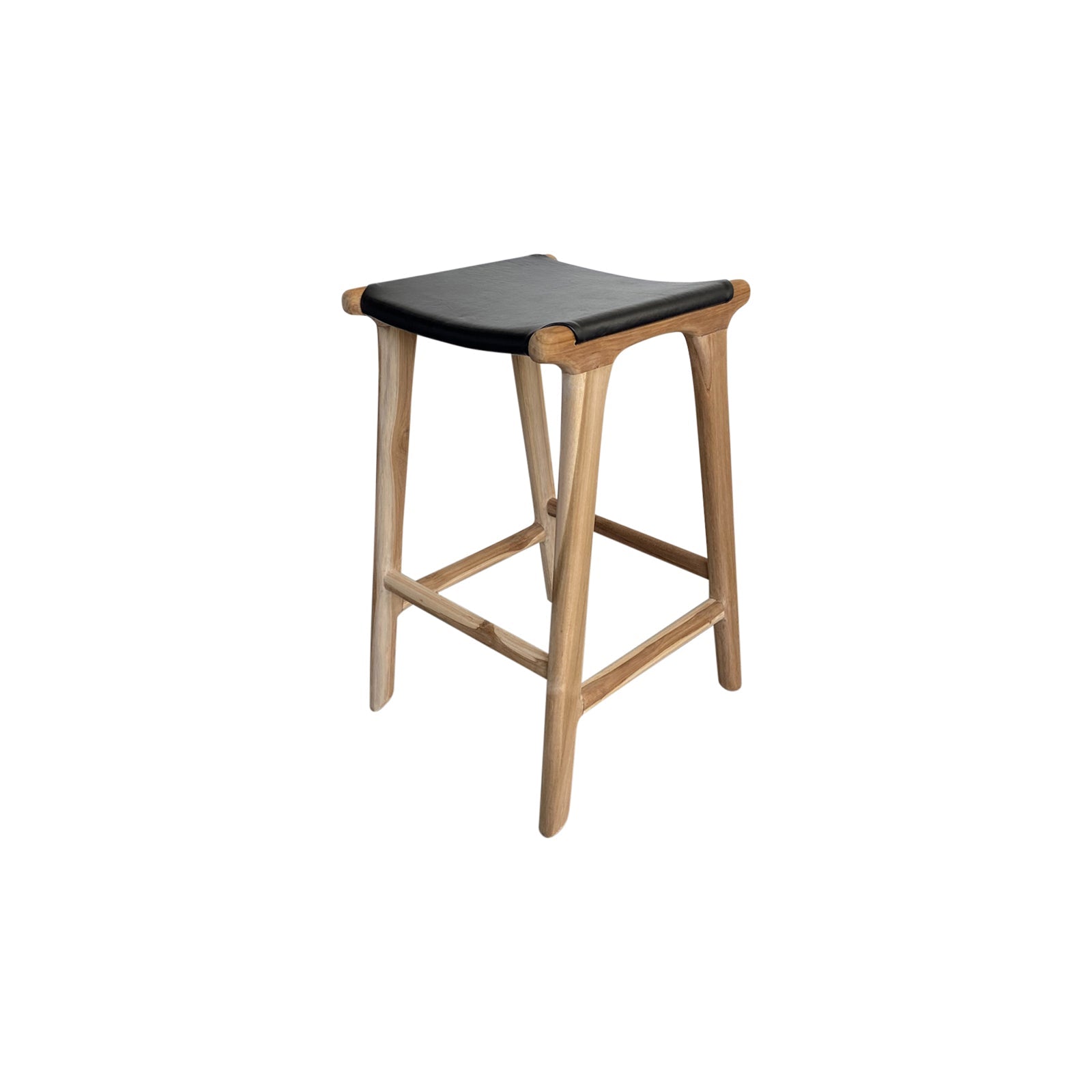 the nel is THE stool that your best friend will perch on to chat with you while you’re making dinner. with a hand-carved teak-wood frame and a calf-leather seat, she is both comfortable and casual - that perfect.